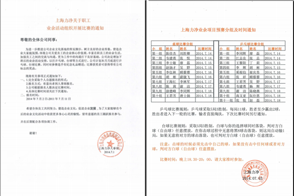 業(yè)余活動比賽通知: